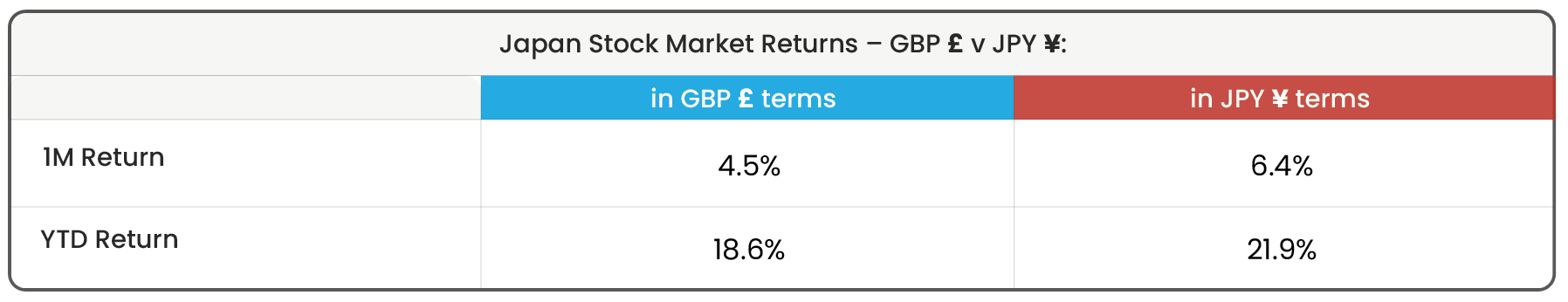 Source: Morningstar. Data shown in GBP (Pound Sterling) and JPY (Japanese Yen) terms. Data as of 31/10/2025. Index; Morningstar Japan Index NR.
